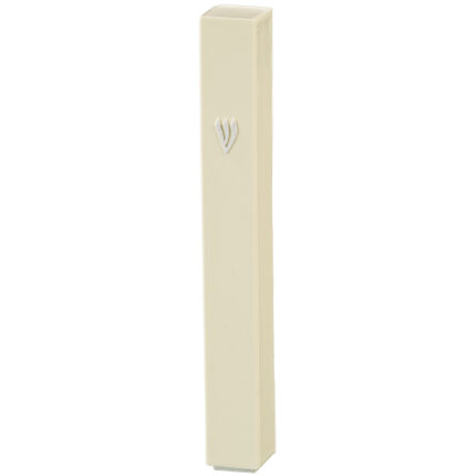 מזוזה פלסטיק 15 ס"מ לבנה "ש" כסף פקק גומי – ללא